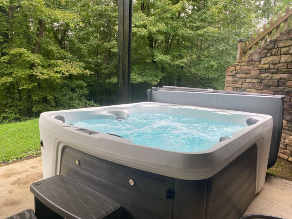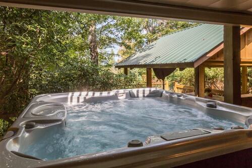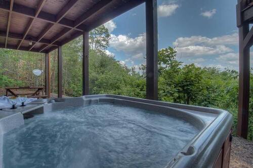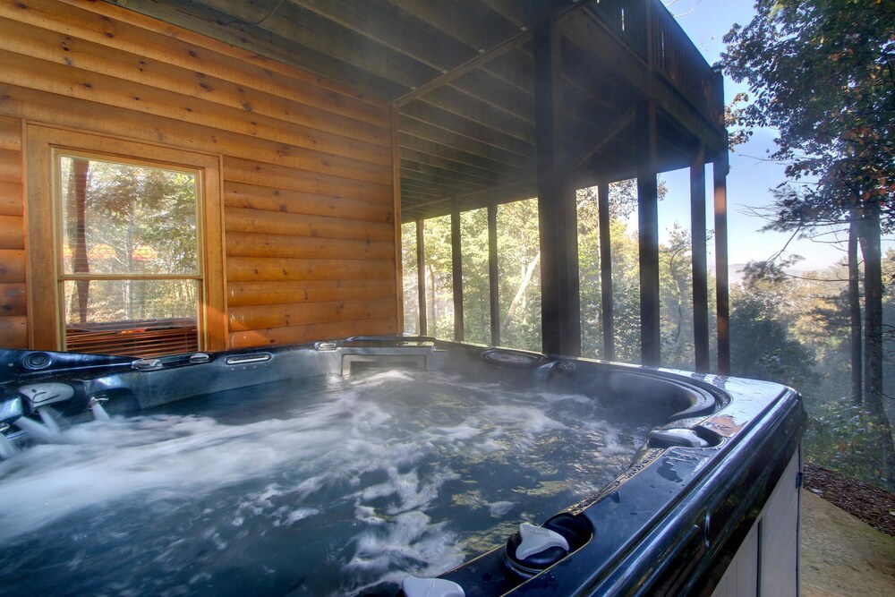 Hot Tub On The Covered Porch Overlooking Gorgeous Mountain Views Hot Tub Outdoor Cabin Hot Tub Hot Tub Cover